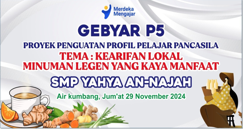 Pada tanggal 29 November 2024, SMP Yahya An Najah dengan semangat melestarikan budaya lokal menggelar acara Gebyar P5 (Projek Penguatan Profil Pelajar Pancasila) dengan tema “Minuman Legen Kaya Akan Manfaat”. Kegiatan ini bertujuan untuk memperkenalkan kepada siswa tentang kearifan lokal sekaligus meningkatkan kesadaran akan manfaat produk tradisional yang berasal dari daerah setempat.
