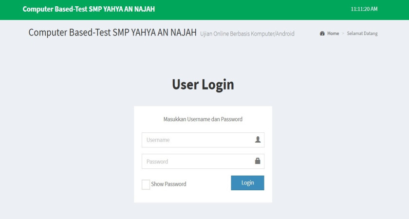 Siswa dapat mengakses portal ujian di smpyahyaannajah.sch.id di menu -